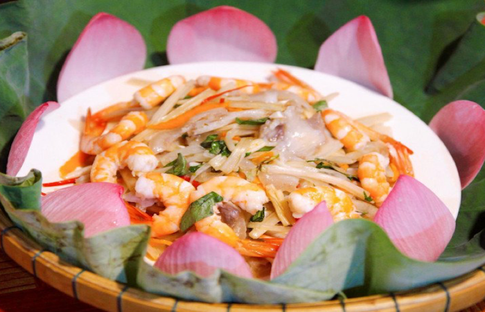 Oltre ai paesaggi, Dong Thap è celebre per le sue specialità gastronomiche a base di loto. Tra i piatti più rinomati c’è l’insalata di germogli di loto (goi ngo sen), preparata con i germogli più teneri, condita con spezie dolci e acide, erbe aromatiche, carne sfilacciata o gamberi bolliti, creando un gusto unico e indimenticabile.