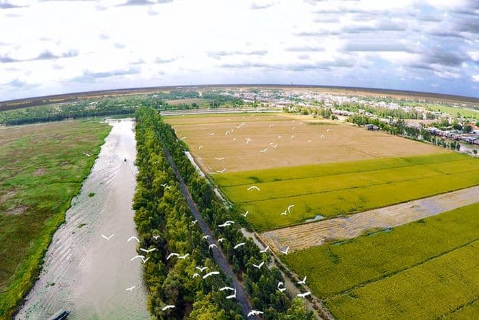 I paesaggi naturali di Long An offrono campi di loto sconfinati, foreste di melaleuca lussureggianti e strade immerse nella vegetazione perfette per fotografie spettacolari. La rete di canali e corsi d’acqua favorisce il turismo fluviale, rendendo Long An ideale per escursioni tra fiumi e laghi.