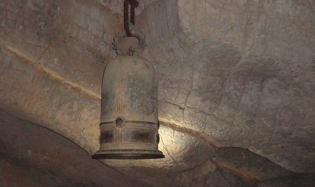 La campana di bronzo fusa dai due monaci Tri Kien e Tri The nel 1707 è ancora appesa alla porta della Grotta Oscura. (Foto: Raccolta)