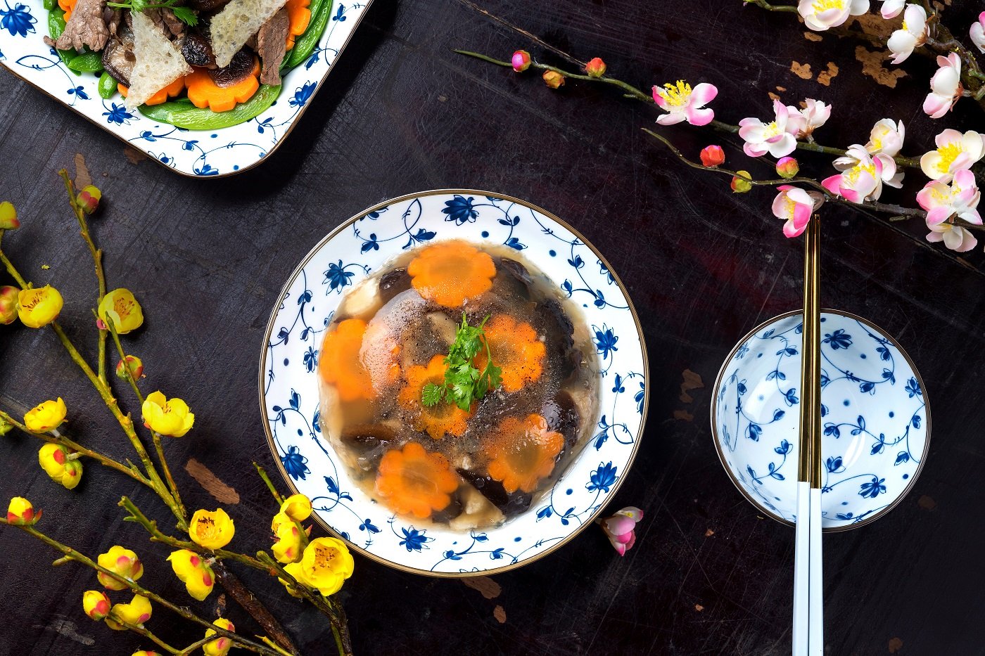 Con il freddo del Tet del Nord, sarebbe bello gustare la carne congelata con delle cipolle in agrodolce da servire con il riso. Tra i piatti deliziosi del Tet del Nord, questo è sicuramente un piatto ricco di sapori tradizionali, indispensabile per i primi pasti dell’anno. Questo piatto è composto da molti ingredienti diversi come carne di maiale, pollo, zampetti di maiale, pelle di maiale, aggiunti con un po’ di funghi orecchie di legno, funghi shiitake e spezie e poi cotti a fuoco lento. Dopo la cottura a fuoco lento, la carne viene lasciata fuori a congelare o conservata in frigorifero.