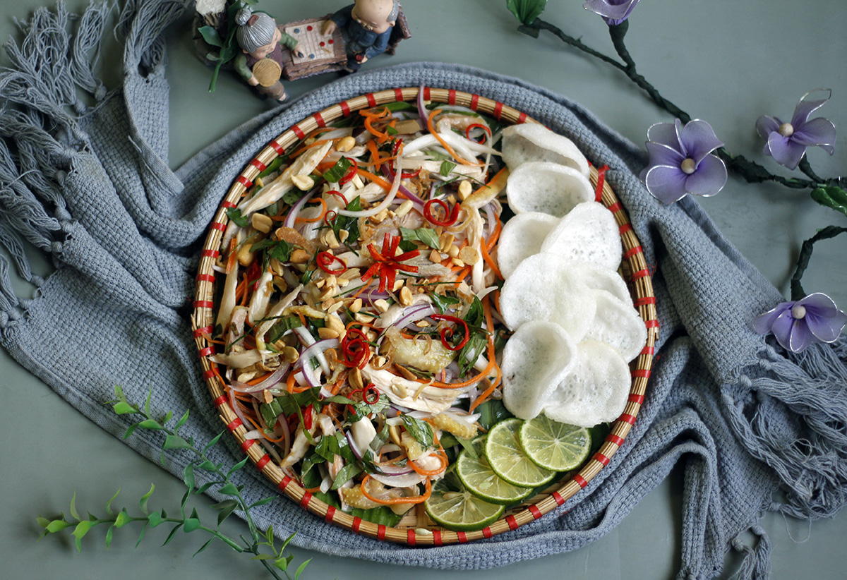 Oltre ai piatti a base di carne grassa o fritta, anche le insalate agrodolci del Nord sono molto popolari. Non solo aiutano ad alleviare la noia durante i primi giorni di festa dell’anno, ma questo piatto aiuta anche a bilanciare l’alimentazione in modo eccellente. Per questo motivo, nei vassoi della cena del Tet al Nord, si vedono spesso insalate diverse come: insalata di meduse, insalata di cosce di pollo, insalata di fiori di banana, insalata di manzo essiccato, ecc. A seconda delle preferenze di ogni famiglia, il piatto viene elaborato in molti modi diversi.