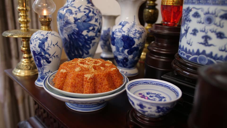Questo piatto di riso appiccicoso vietnamita ha un sapore leggermente dolce e di nocciola e il colore rosso-arancio lo rende visivamente attraente.A volte viene cotto al vapore o con latte di cocco e zucchero per esaltarne il sapore e la dolcezza.