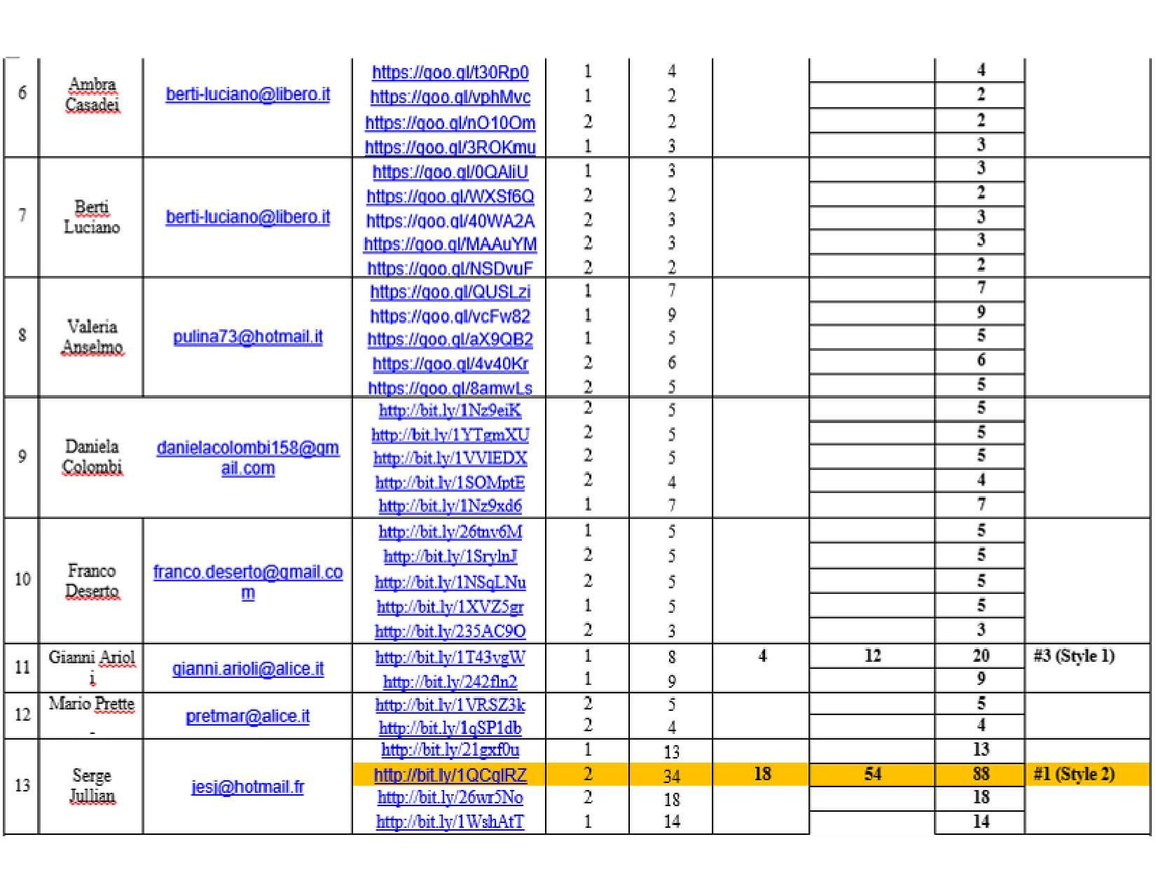 – Primo Classificato: Serge Jullian (34 LIKE + 18 SHAREx3 = 88 Punti)