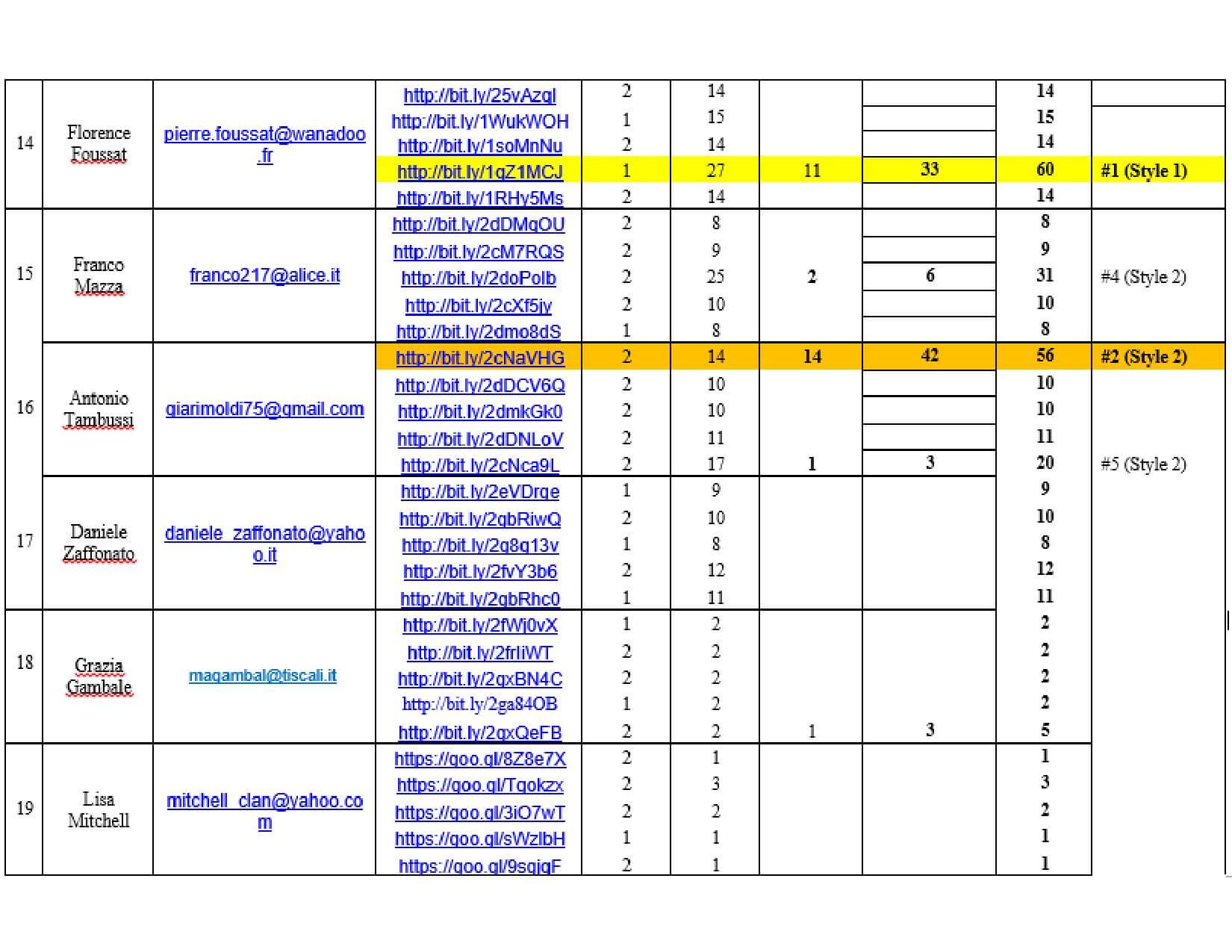 – Primo Classificato: Florence Foussat (27 LIKE +11 SHAREx3 = 60 Punti)