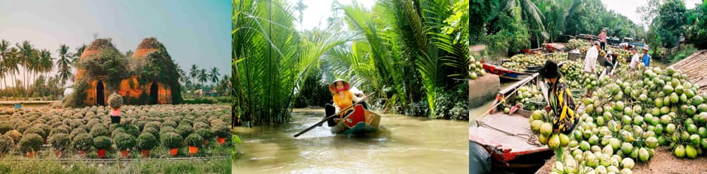 Breakfast at the hotel and departure by boat to visit the Cai Rang floating market, one of the most picturesque in the Mekong Delta.