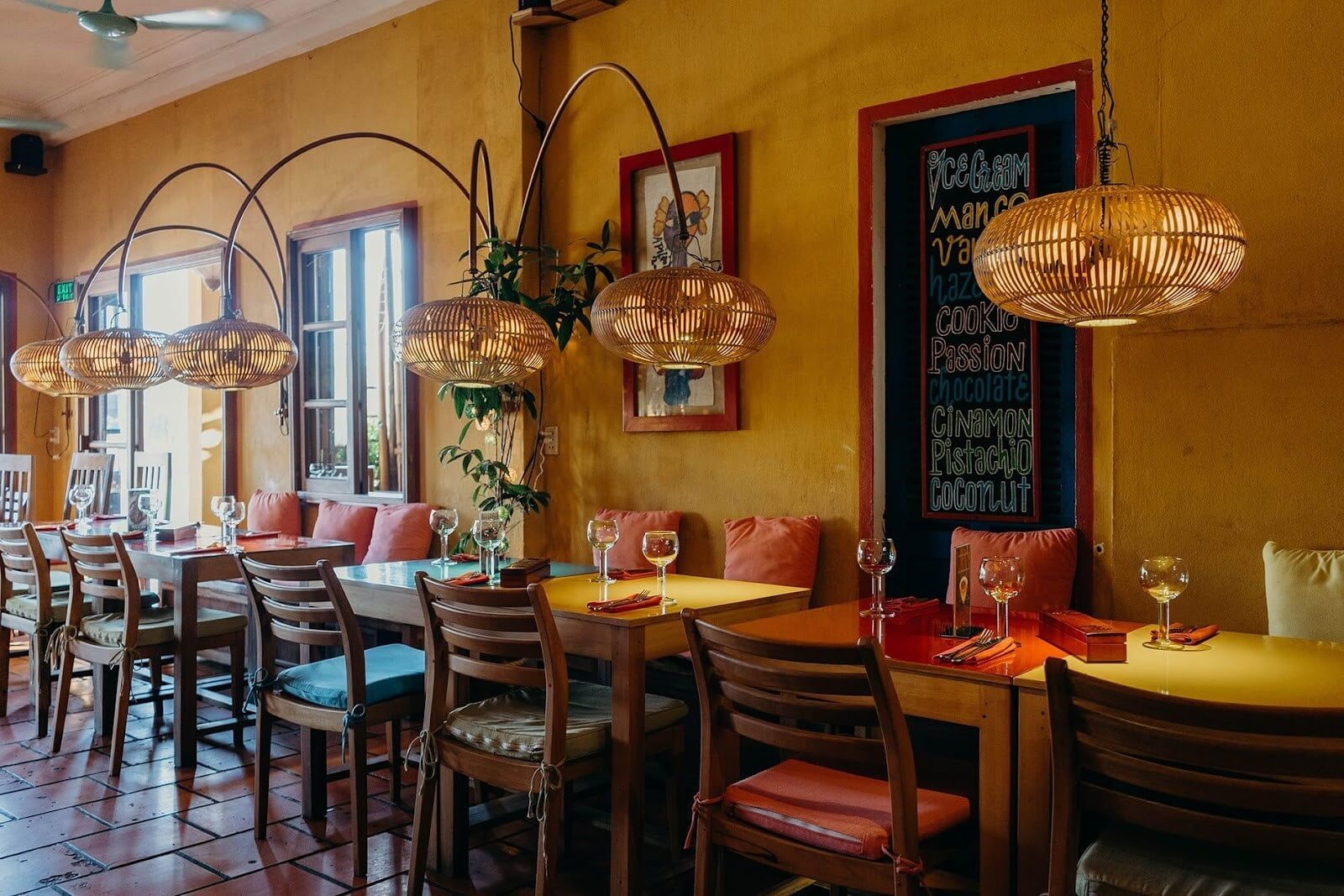 Il ristorante Mango Mango è un locale colorato situato nella tranquilla zona del fiume Hoi An, che offre specialità vietnamite contemporanee e una vasta gamma di cocktail esclusivi. È un luogo molto popolare per la cena dopo una giornata trascorsa a esplorare Hoi An. La spaziosa terrazza al piano superiore offre una vista panoramica sull’iconico ponte coperto giapponese, sul fiume Thu Bon e sul mercato notturno di Hoi An.