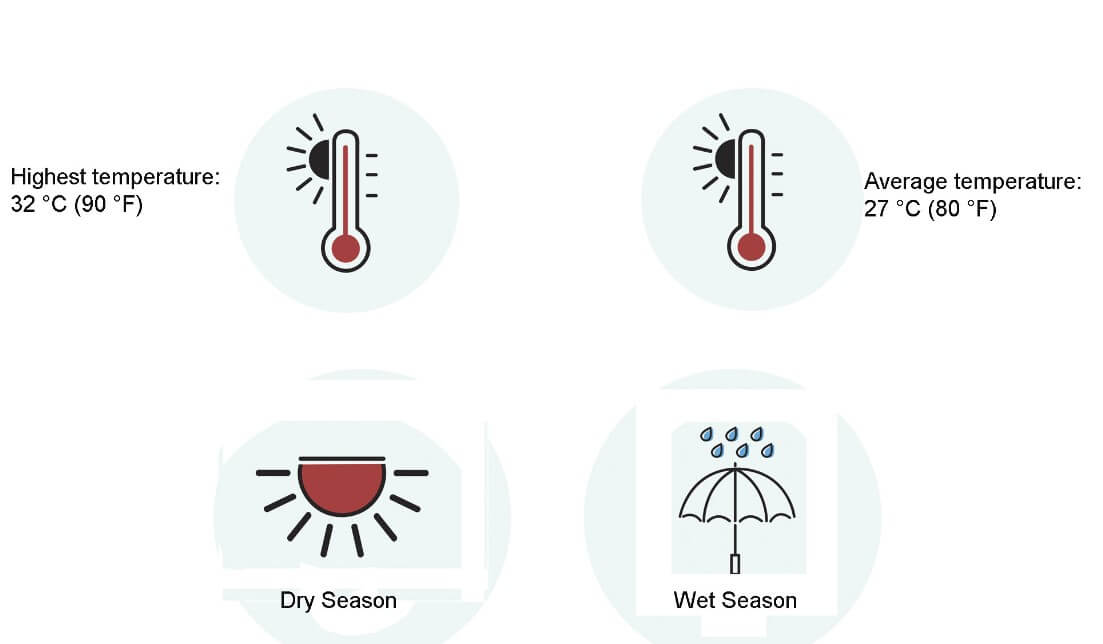 Si noti inoltre che la stagione secca comprende l’alta stagione, soprattutto a Natale/Capodanno o a metà aprile, quando si prevede un aumento delle spese di viaggio. Pertanto, è meglio effettuare le prenotazioni dei servizi di viaggio il prima possibile per evitare la piena occupazione o una minore qualità del servizio.