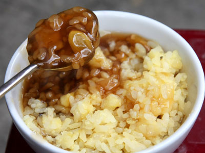 ‘Che ba cot’ è un piatto tradizionale preferito da tante persone. Nei giorni freddi, è molto bello che si possa mangiare una tazza di ‘Che ba cot’ caldo insieme al riso glutinoso e fagioli verdi al vapore.