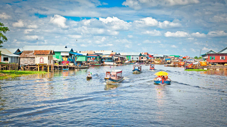 Tonle Sap è il più grande lago d’acqua dolce nel sud est asiatico. Questo lago si estende e cambia in ogni stagione. Maggio è la stagione secca in Cambogia, il grand parte del Tonle Sap è asciutto fino alla stagione delle piogge, il lago si allarga, con molti villaggi galleggianti di residenti che vivono lì. Sedersi su una barca sul lago Tonle Sap e visitare della città è la opportunita d’oro per i visitatori di capire meglio sulla vita di gente di qui.