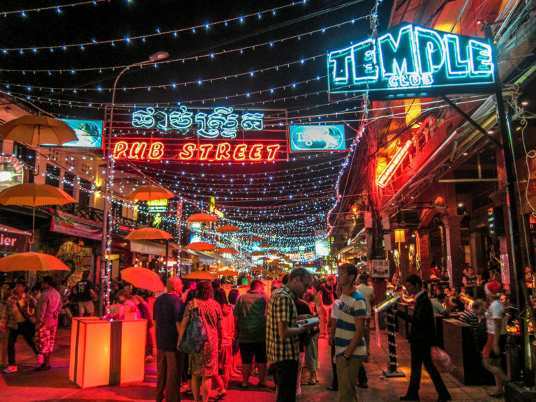 Sicuramente quando viaggiate in Cambodia , la maggior parte dei turisti viaggeranno gli antichi templi di Angkor, visitando il grande lago Tonle Sap, e altre attività diurne. Ma se pensate che non c’è molto da fare dopo il tramonto, avrete sbagliato. Le zone più vive a Siem Reap dopo il tramonto sono Pub Street. Questo è un luogo dove potete trovare bar, pub o ristoranti aperti tutta la notte.