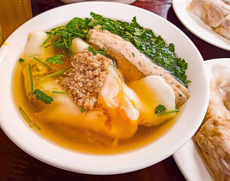 A Cao Bang ci sono molti cibi locali gustosi che potreste voler provare. Il Banh cuon (involtino di riso al vapore) è una specialità di Cao Bang. È noto per la sua salsa speciale a base di brodo d’ossa. Le ossa vengono fatte sobbollire per ore prima di essere servite, con l’aggiunta di carne macinata, cipolle fritte e funghi di bosco per rendere il piatto più saporito.