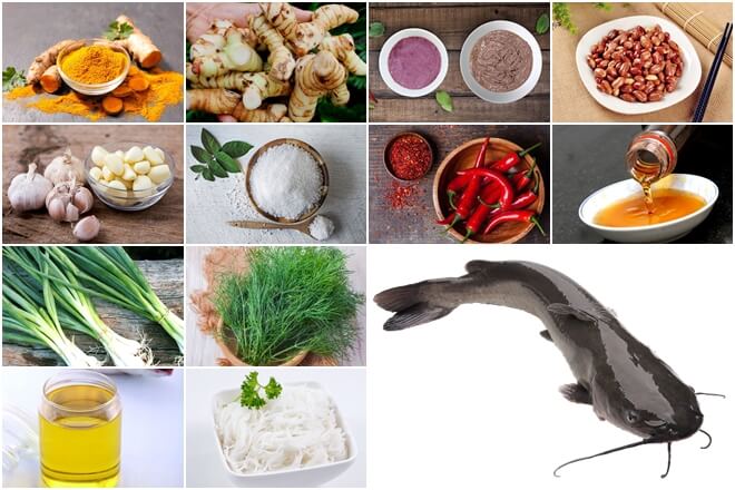 - Per preparare la marinata, è necessaria una miscela di questi ingredienti: curcuma in polvere, galangal finemente grattugiato, aglio finemente schiacciato, riso fermentato vietnamita, pasta di gamberetti, olio e un pizzico di pepe macinato. Mescolare bene il composto. Se preferite un gusto più delicato, scegliete la salsa di pesce al posto della pasta di gamberetti.