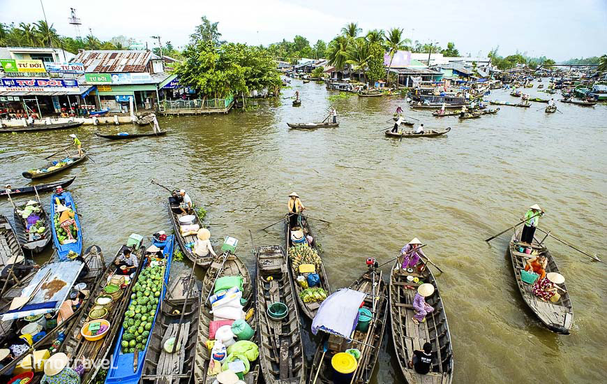 Trasferimento al molo per una gita in barca per visitare il mercato galleggiante di Cai Rang – il più grande e vivace del delta del Mekong. Le moltitudini di colori e odori riempiono l’aria creando un atmosfera frizzante dove centinaia di sampan pieni di merci come riso, frutta e prodotti artigianali che i commercianti portano al mercato alle prime luci dell’alba per vendere.