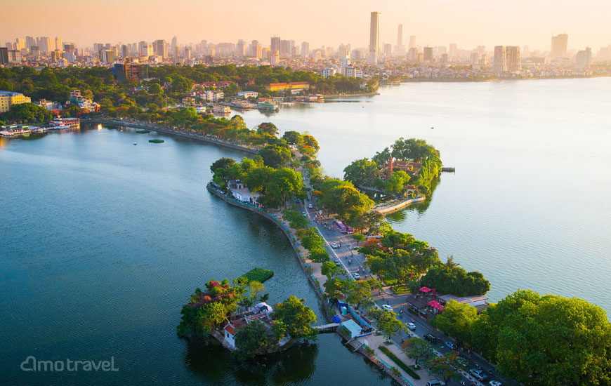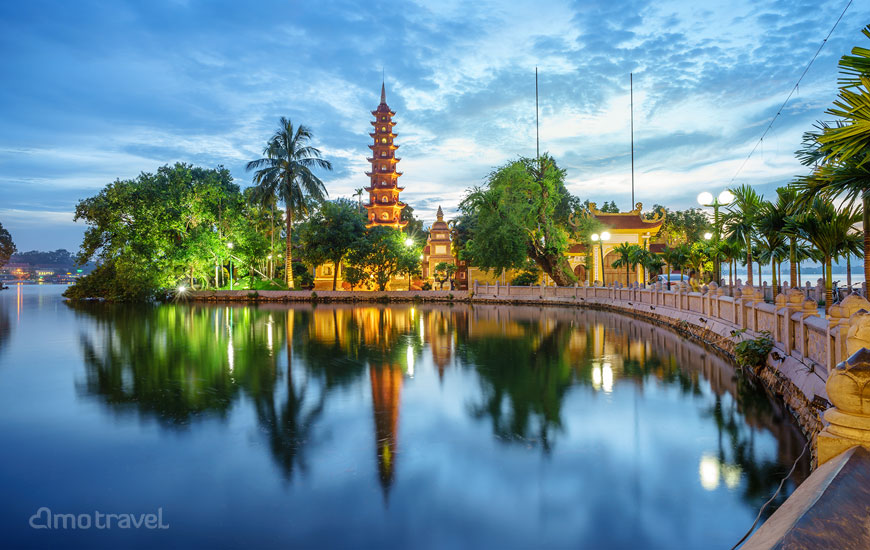– Lago dell’Ovest, il lago naturale più grande di circa 4 km2 & la Pagoda di Tran Quoc