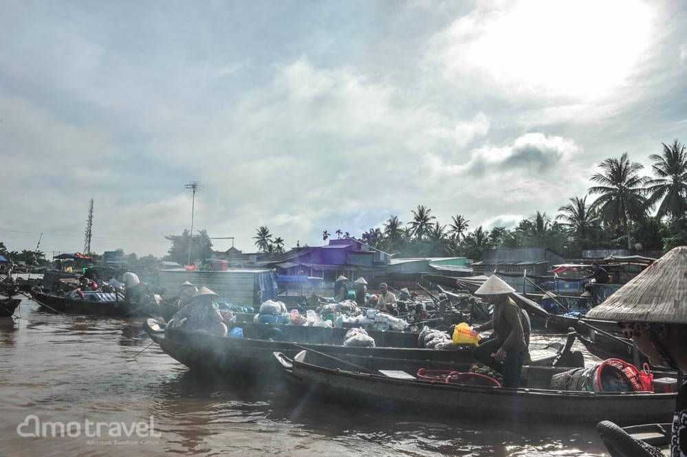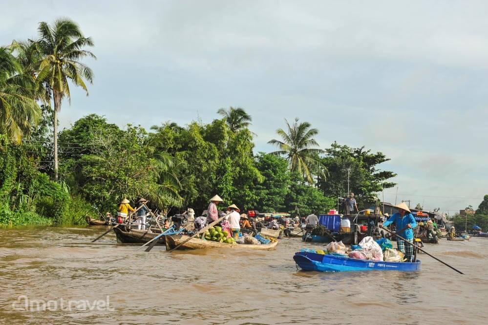Trasferimento al molo per una gita in barca per visitare il mercato galleggiante di Cai Rang – il più grande e vivace del delta del Mekong. Le moltitudini di colori e odori riempiono l’aria creando un atmosfera frizzante dove centinaia di sampan pieni di merci come riso, frutta e prodotti artigianali che i commercianti portano al mercato alle prime luci dell’alba per vendere.