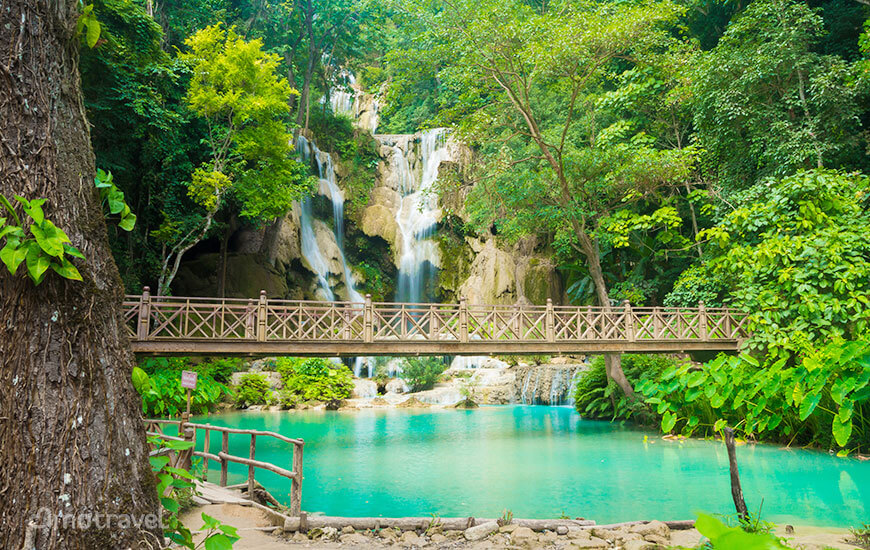 Visiteremo anche le cascate di Kuang Si, dove si potrà godere di viste spettacolari all’interno del parco in cui le cascate scendono su molti livelli calcificati e giù per diverse centinaia di piedi in una serie di fresche piscine turchesi.