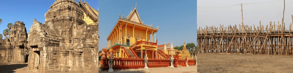 Lungo strada, potrete visitare i templi di Phnom Bros e Phnom Srei, conosciuti i siti storici che custodiscono il patrimonio culturale dei Khmer con numerose storie interessanti; il mercato locale dove potrete vedere tutti i volti della realtà popolare cambogiana. Ci sono numerose bancarelle di pesci, carne, verdure, e tante altre cose e anche il ponte di bambù Koh Pen che collega la città di Kampong Cham con l’isola Koh Paen.