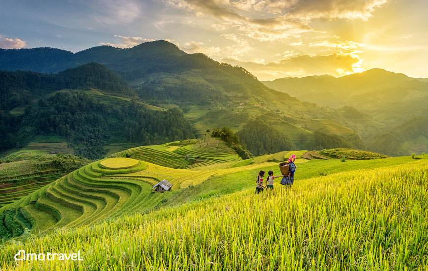 Inizierete un meraviglioso viaggio in auto e un brevissimo trekking per ammirare i maestosi paesaggi delle terrazze di riso, i villaggi locali degli H’mong neri e le montagne del villaggio Han Xung del popolo Hmong. Vi immergerete nel maestoso paesaggio naturale, nei campi terrazzati unici di questa zona.