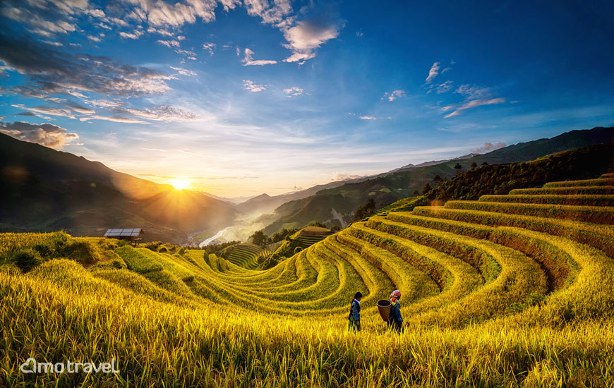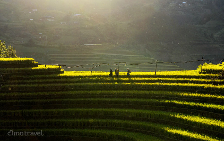 Il momento migliore per fare il tour è durante la stagione della raccolta di riso, da maggio a fine agosto. Vedrete tantissime persone dell’etnia H’Mong con le ceste in spalla chini sulle risaie dorate intenti a raccogliere il loro bene di sostentamento e accanto a loro i buffali che pascolano pigramente.