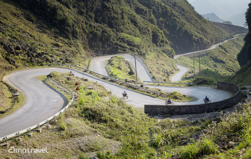 Questa strada sale e poi scende in una valle, da dove gira a sinistra (verso ovest) e incontra l’autostrada QL3. Prendete l’autostrada QL3 in direzione sud per alcuni chilometri fino a Phủ Thông. È un tratto di strada molto panoramico.